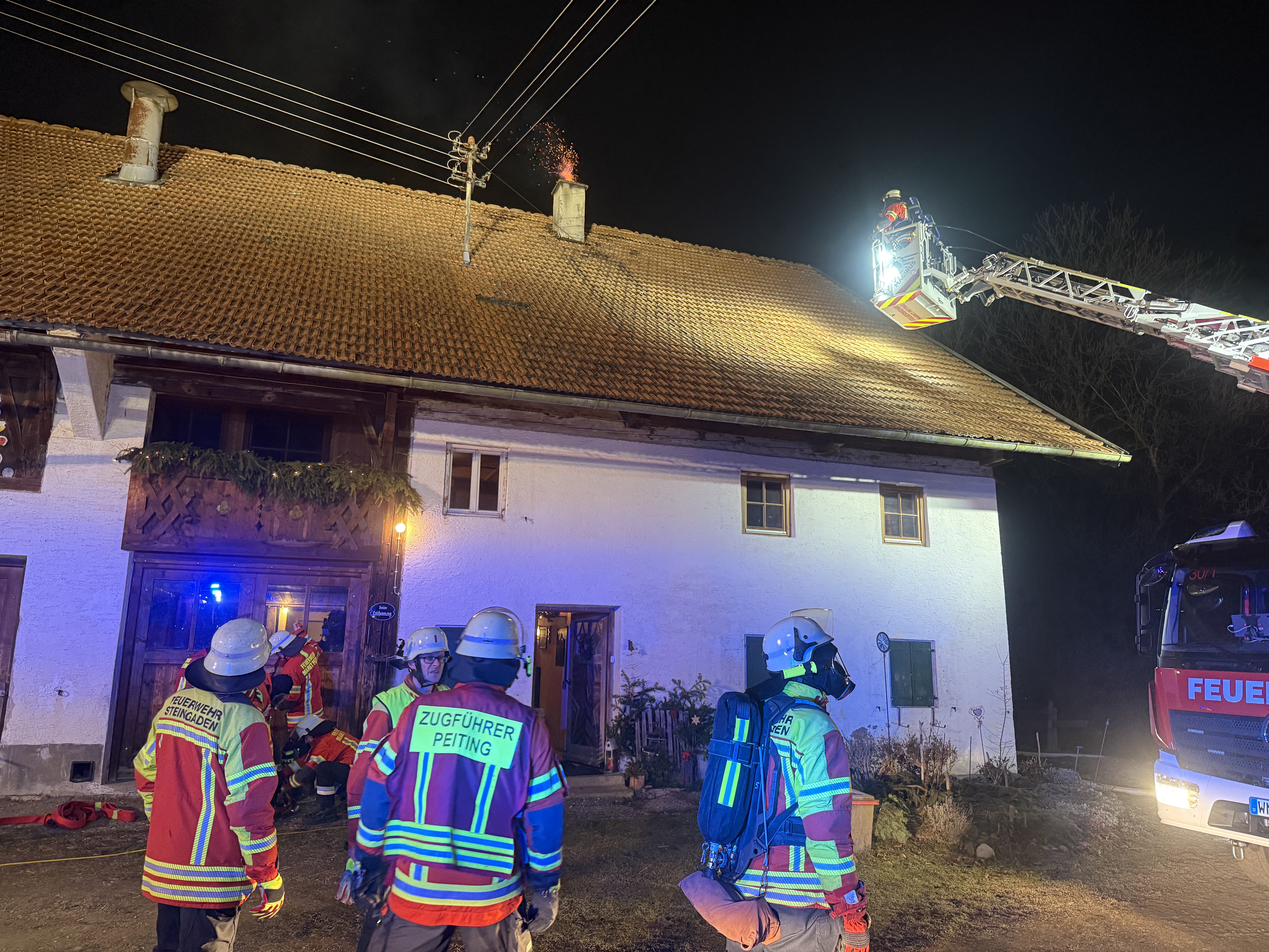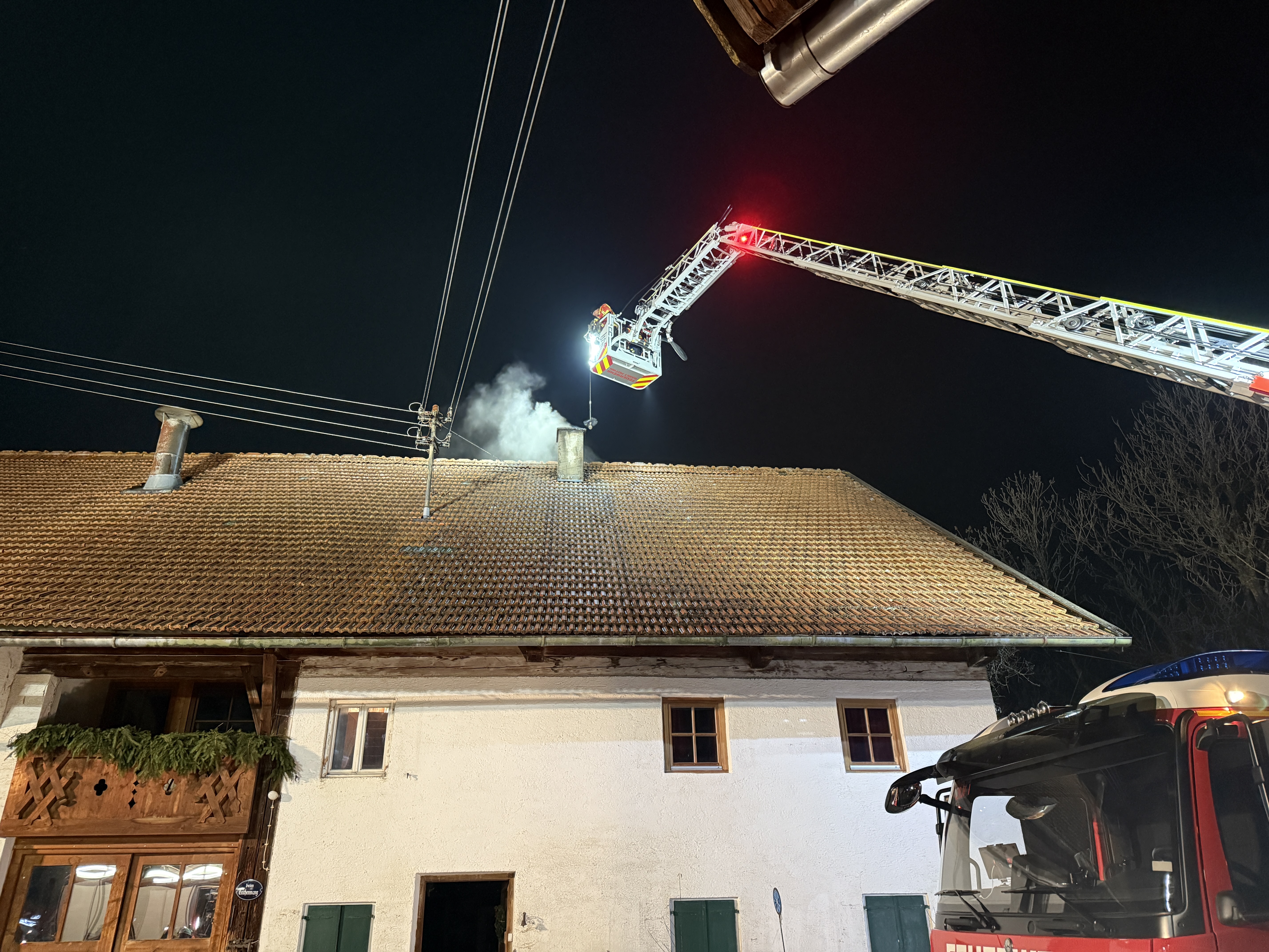 Die Feuerwehr Peiting wurde nach Steingaden zu einem Kaminbrand alarmiert. Vor Ort unterstützten wir die Feuerwehren Steingaden und Fronreiten mit unserer Drehleiter. Zusätzlich unterstützten wir den Kaminkehrer, der anschließend den Kamin noch kehrte.