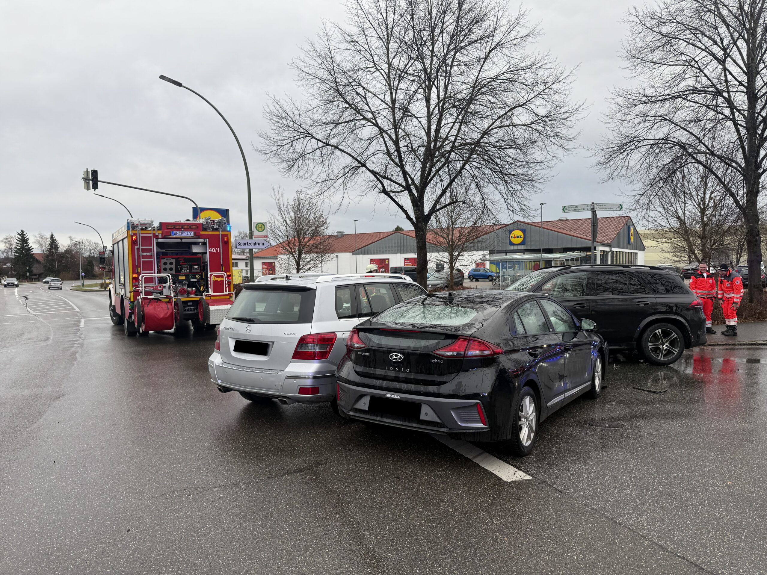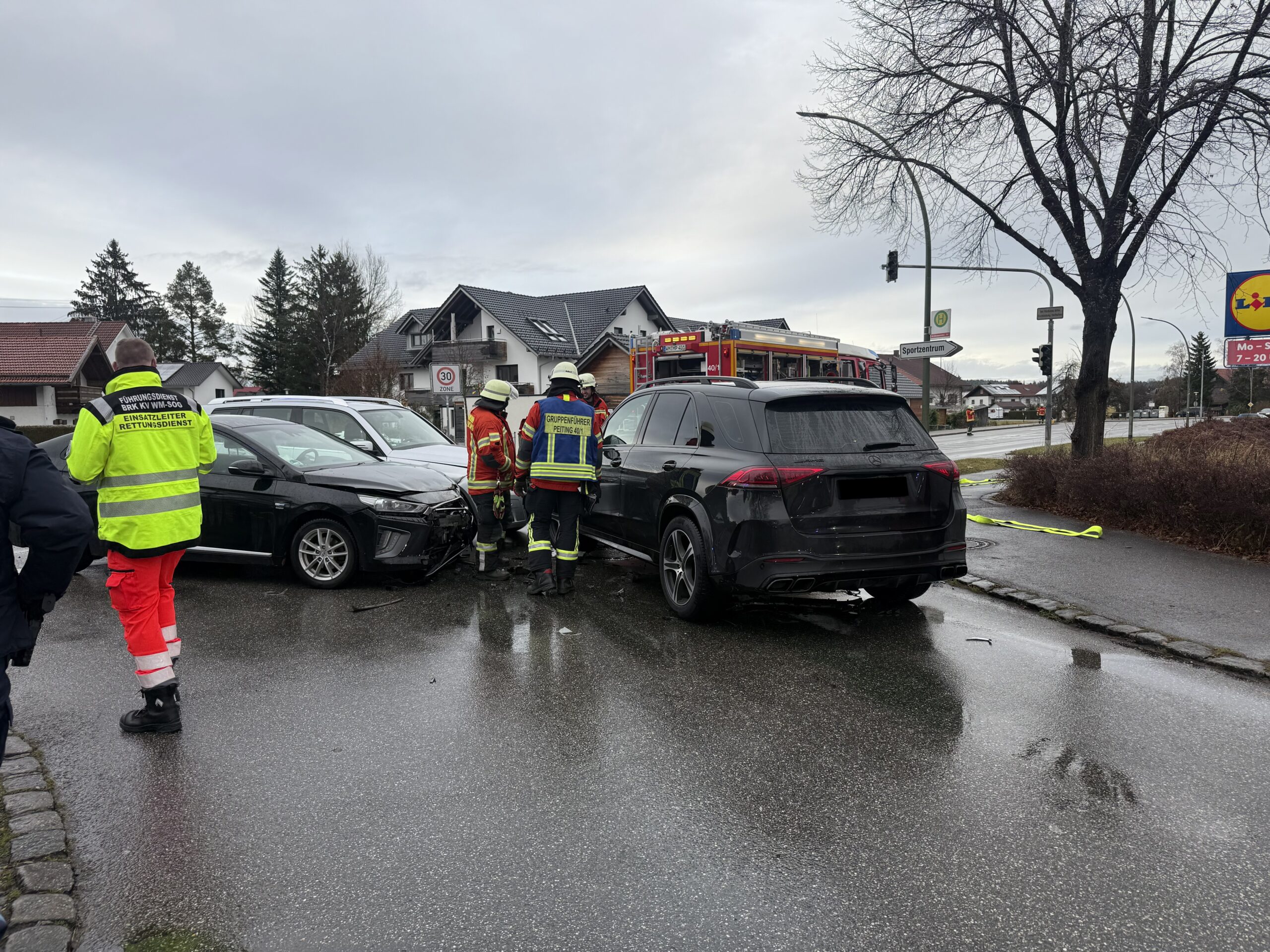 Die Feuerwehr Peiting wurde in die Münchener Straße zu einem Verkehrsunfall alarmiert. Vor Ort waren drei Pkw kollidiert. Wir richteten eine halbseitige Sperre ein und banden die auslaufenden Betriebsmittel.