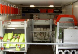 | Beladung u.a. | 4x 500 Meter B-Schlauch auf Rollwägen Lichtmast TF340XE 2x1000W 1x Multifunktionsleiter 1x Stromerzeuger 1x fest verbaute TS8, 1x auf Rollwagen 5000 Liter Wassersack Verkehrstafel Verkehrsabsicherung 2x Strahler Mobile Staustelle Biber | |